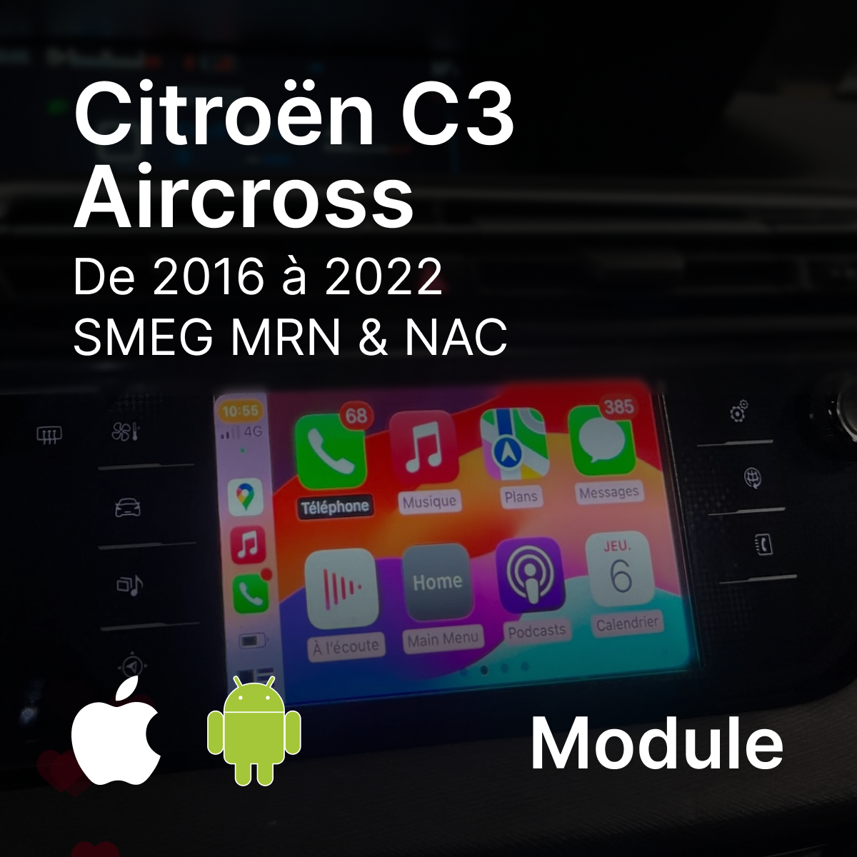 Give a new dimension to your Citroen C3 Aircross (2016 - 2022) thanks to our module CarPlay And Android Auto , specially designed for systems SMEG MRN And NAC . This module allows you to take full advantage of your smartphone's features directly from your vehicle's screen, for smoother and more connected driving.
