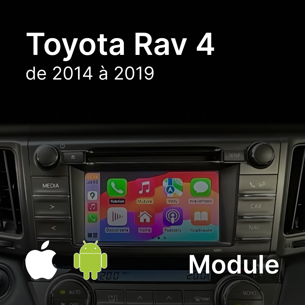 Give a new dimension to your Toyota Rav 4 (2014-2019) thanks to our module CarPlay And Android Auto , specially designed for systems Touch 2 And Entune 2.0 . This module allows you to take full advantage of your smartphone's features directly from your vehicle's screen, for smoother and more connected driving.