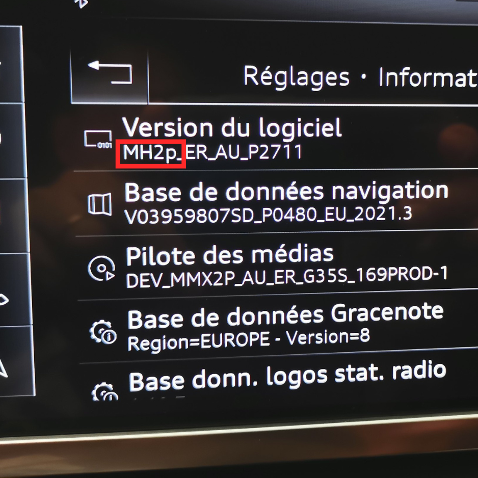 Audi avec la version de logiciel MH2p uniquement.