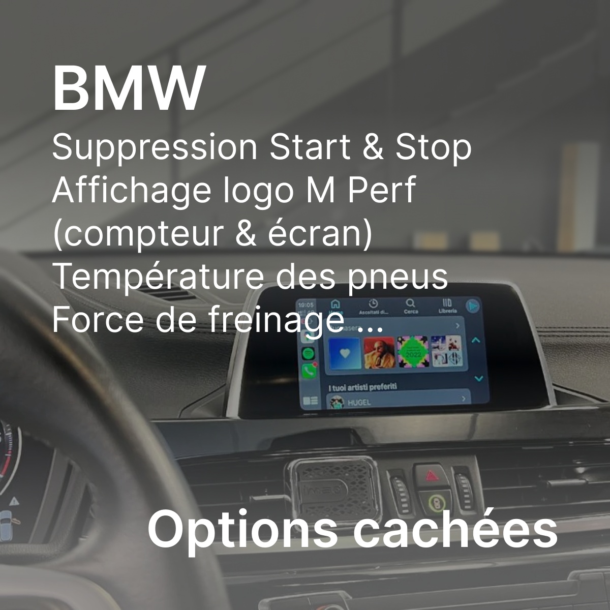 Nous proposons également l'activation de CarPlay pour BMW, vous permettant de profiter d'une expérience de conduite connectée à bord de votre véhicule.